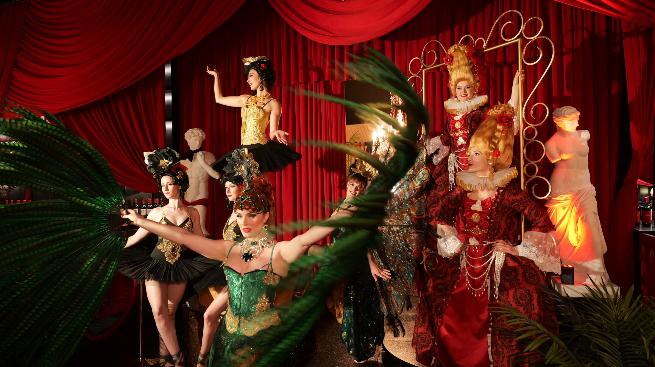 From Rococo and Regency to Victorian & Edwardian styles, our performers embody the grace, grandeur, & whimsy of history’s most lavish celebrations—complete with corseted couture, powdered wigs, & theatrical charm.